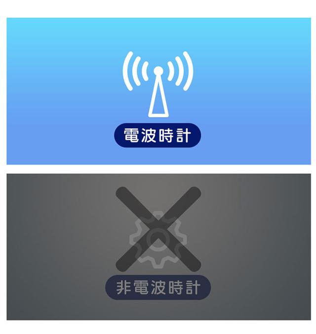 電波時計(JJY)、置掛両用、時刻表示、カレンダー表示、温度表示、電波受信状況表示、受信マーク、12/24時間表示切替、電池交換お知らせ表示
