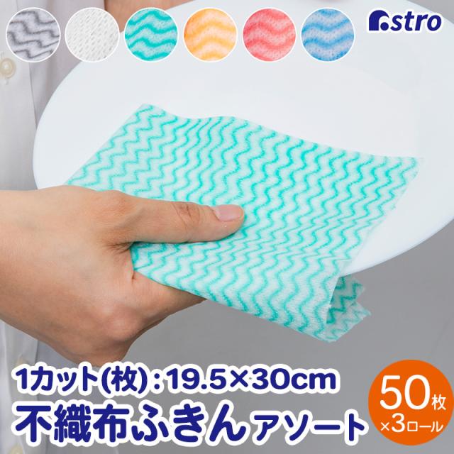 キッチンクロス 50カット×3ロール 19.5×30cm 3本アソート 繰り返し使える 速乾 不織布 ふきん カウンタークロス テーブルダスター アストロ 619-14