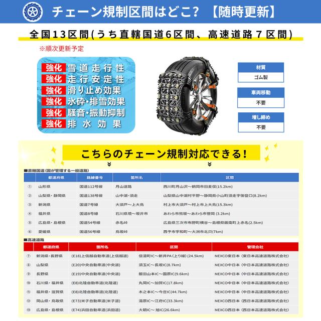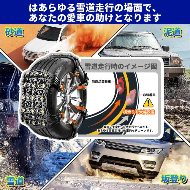 【15日までクーポン利用で4321円★ポイント10%】タイヤチェーン ゴムタイヤチェーン 非金属 スノーチェーン ジャッキアップ不要 汎用 取付簡単 非金属タイヤチェーン チェーン規制 対応 騒音 振動 改善版 車 雪道 非金属チェーン