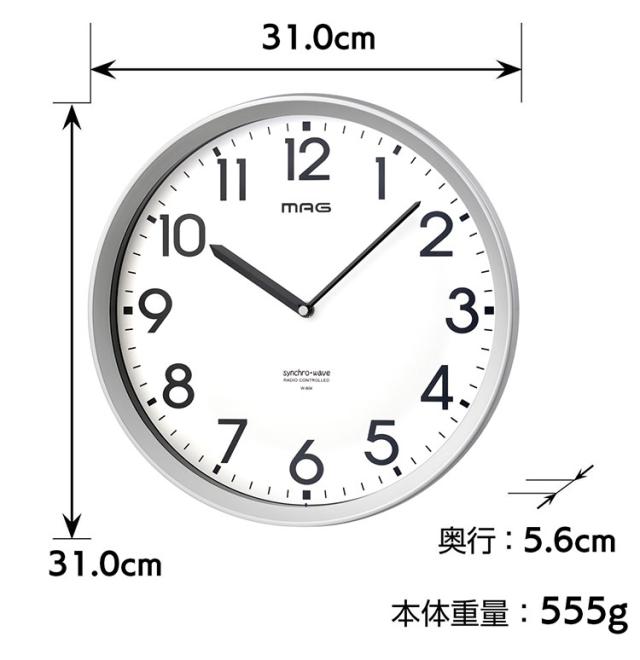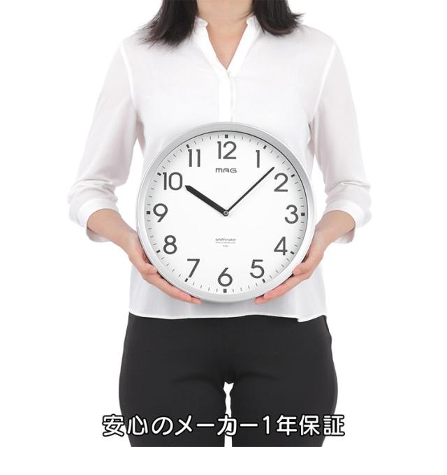 MAG 掛け時計 壁掛け時計 グリーン購入法適合商品 電波時計 アナログ 電池寿命5年 防災 安全 プラスチック オフィス 事務所 工場 倉庫 31.0cm シルバー エコグリン W-804 SM-Z ノア精密【送料無料