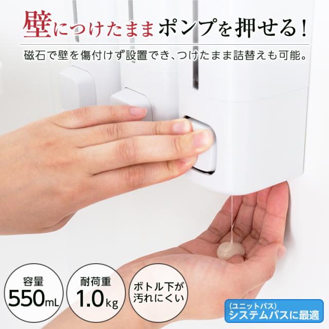 収納 浮かせる収納 お風呂 おしゃれ ディスペンサー 550ml アスベル ASVEL 詰め替え容器 リフィルボトル ボトル シャンプー