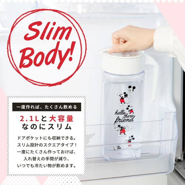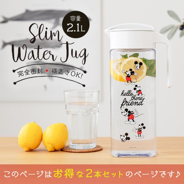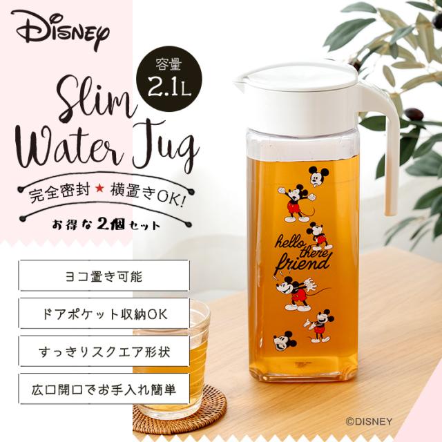 冷水筒 2本セット ディズニー DISNEY ミッキー D211C アスベル 耐熱 横置き 2リットル 2L おしゃれ 洗いやすい プラスチック 麦茶ポット ピッチャー ギフト