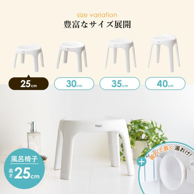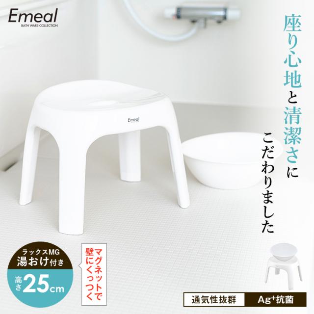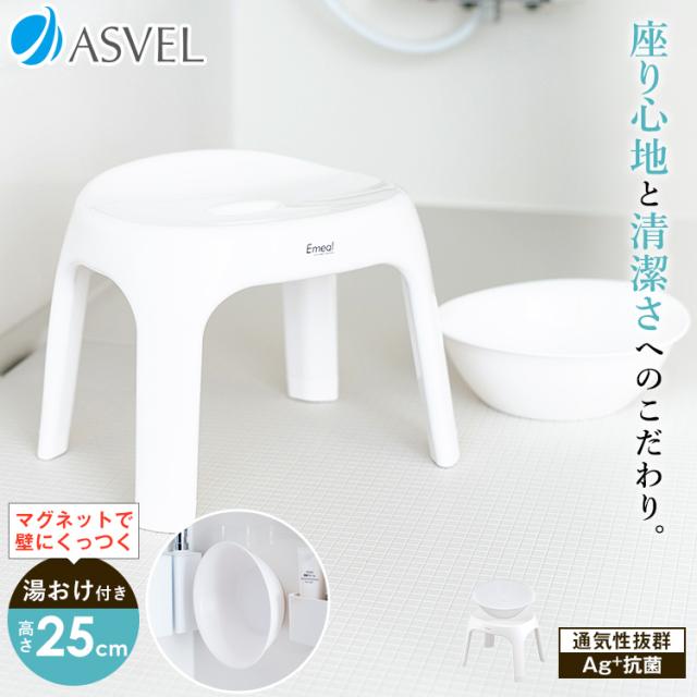 風呂椅子 おしゃれ エミール S 25cm マグネット湯桶 セット アスベル EMEAL バスチェア 風呂いす お風呂 イス 抗菌 高め 洗いやすい S25 カビにくい