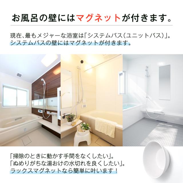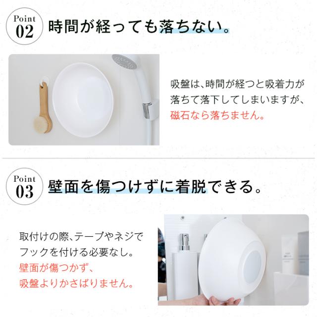 座り心地と清潔さにこだわった「エミール」。体に沿う曲線がお尻にやさしくフィットします。4本脚形状だから、通気性が良く、カビにくく、清潔さを保ちます。裏面に、余計な凹凸がないので、ふき取り掃除も簡単に。浴槽に引っ掛けて乾かす事も出来ます。床置きのボトルなども取りやすい、25cmサイズです。システムバスの壁にくっつくマグネット湯桶付きのお得なセット販売ページ♪「風呂いす」イスの高さ : 25cmサイズ : 幅34.8×奥行25.7×高さ27.3cm本体:ポリプロピレン すべり止め:ポリエチレン「マグネット湯桶」サイズ : 幅25.1×奥行25.1×高さ8.5cm材質 : 本体=PP/ラバーマグネット