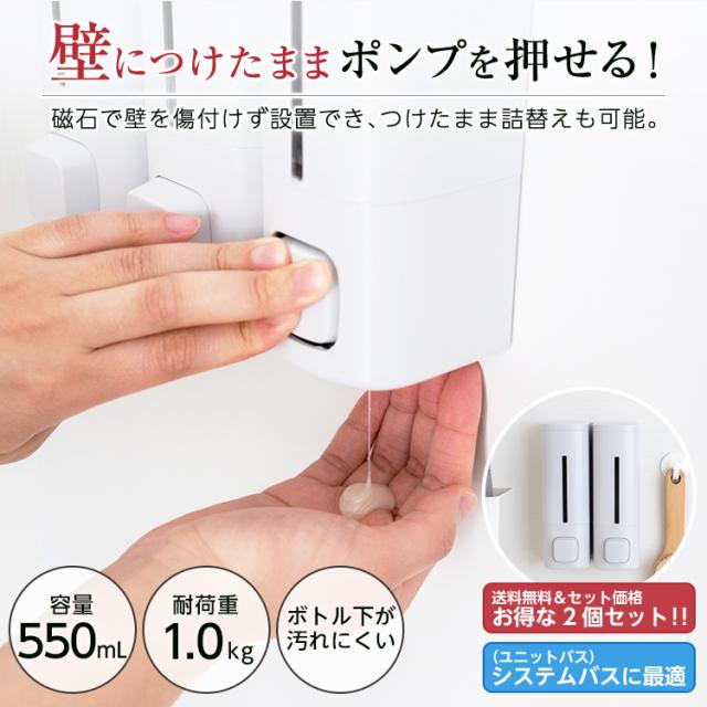 収納 浮かせる収納 お風呂 おしゃれ ディスペンサー 550ml 2本セット アスベル ASVEL 詰め替え容器 リフィルボトル ボトル シャンプー