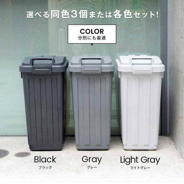 屋内屋外問わず活躍するゴミ箱 ハンドル付ダストボックス 45リットル 。開け閉めしやすい大きなハンドルが特徴です。倒しても中身がこぼれないロック付きなので、犬猫対策、カラス対策や小さなお子様のいたずら対策に最適。袋止め付きで、市販の45リットル のゴミ袋が使えます。フタは開いた状態で固定できるので、ゴミ袋交換もラクラク。フタのカラーを組み合わせれば、ペットボトルや空き缶などの資源ごみの分別にも最適。ファミリーからカフェなどの店舗・オフィスまで使える便利な大容量サイズ。(3個セットの販売ページです)容量 : 45リットル サイズ : 幅32.0×奥行42.3×高さ64.5cm材質 : 本体・フタ・止め具・ポリ袋止め=ポリプロピレン日本製