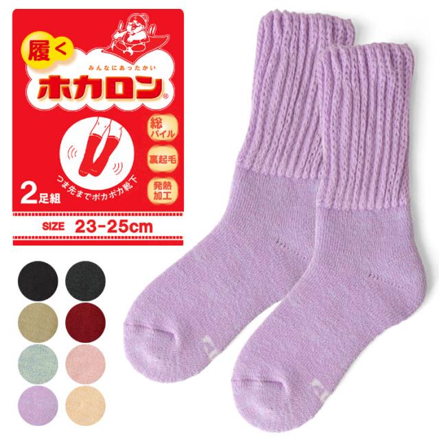 ホカロン 靴下 ソックス レディース 婦人 総パイル 裏起毛 履くホカロン 暖 冷え対策 クルー丈 厚手【C8W】【送料無料】【メール便2】【ladys】 冬新作