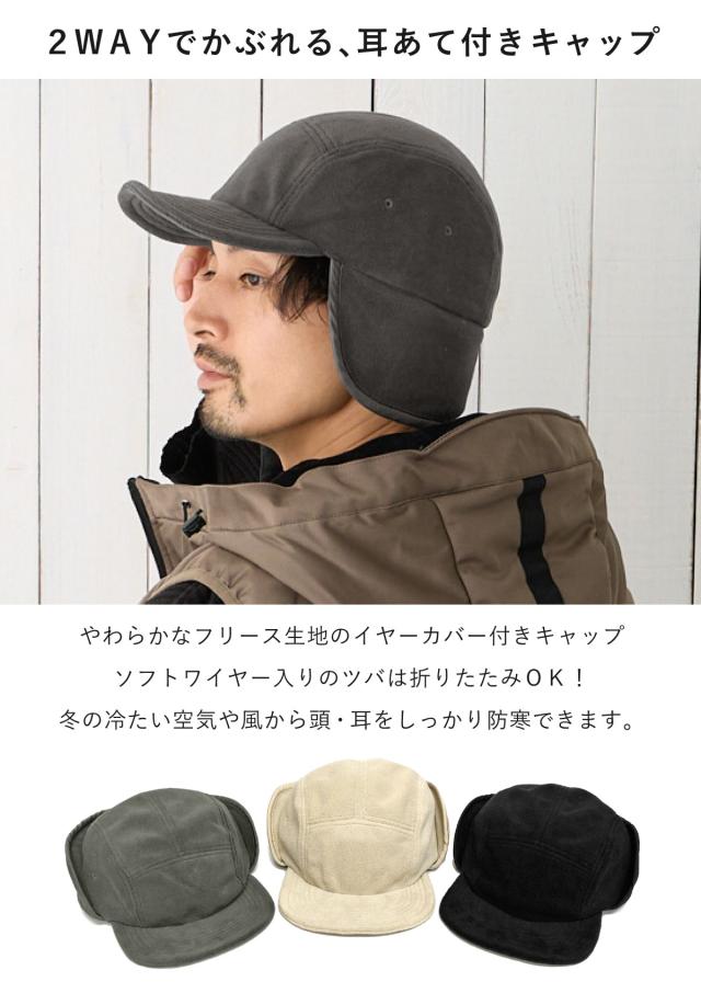 帽子 耳あて付 メンズ キャップ 耳付き帽子 フリース素材 防寒 もこもこ 耳当て たためる フライトキャップ 55cm-59cm 秋冬 2way ジェットキャップ cap-1124 キャスケット 帽子 レディース 暖かい 防風 アウトドア 男女兼用 プレゼント