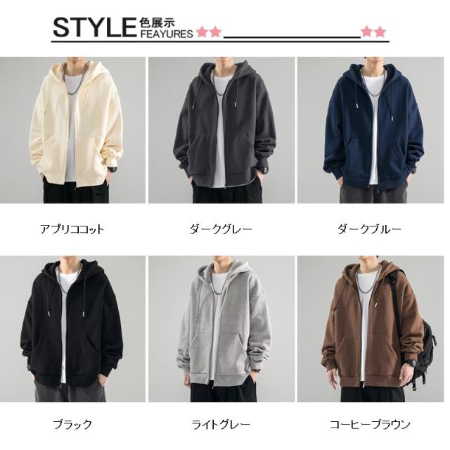パーカー メンズ フード付き 長袖 無地 トップス ジップアップ プルオーバー シンプル カジュアル ゆったり 通勤通学 暖か 秋冬 誕生日プレゼント