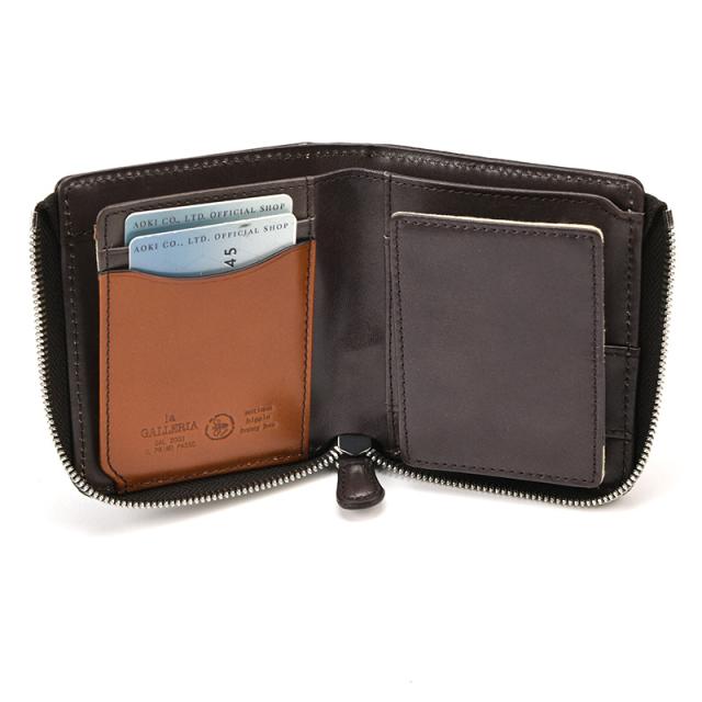 青木鞄 la GALLERIA本革スムース キーポケット付きコンパクト二つ折り財布 Emblema