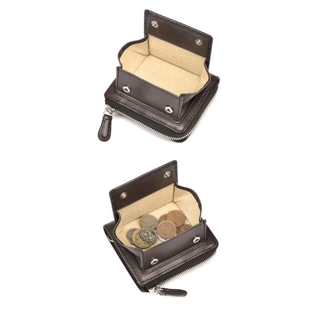 背面に大きく開くBox型の小銭入れを配置。自然と箱型に立ち上がるため中身が見やすく、小銭の出し入れもしやすくなっています。
