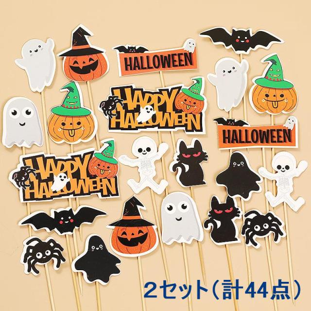 【2組計44枚】ハロウィン プロップス ハロウィンケーキトッパー ハロウィーン 飾り
