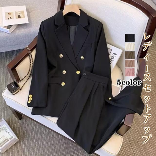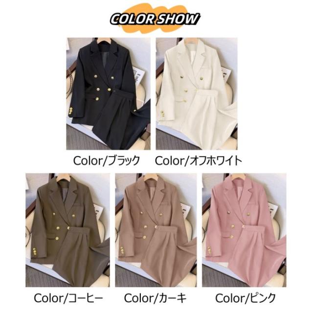 パンツセットアップ レディース セットアップ ダブルブレストジャケット ロングパンツ 2点セットパンツスーツ セレモニースーツ パンツスーツ カジュアル 通勤通学