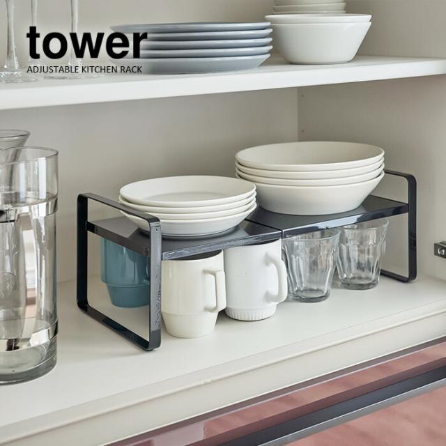 【山崎実業】伸縮収納ラック 2段 タワー(ホワイト)(ブラック) // YAMAZAKI 山実 モノトーン 雑貨 人気
