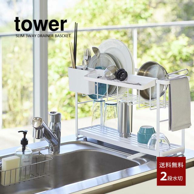 【山崎実業】スリムスリーウェイ水切りワイヤーバスケット 2段(ホワイト)(ブラック) // YAMAZAKI 山実 モノトーン 雑貨 人気