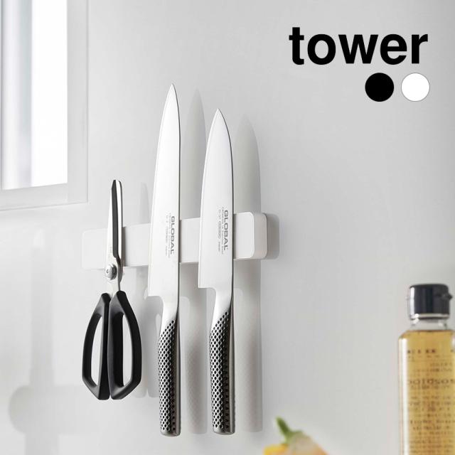 【山崎実業】マグネット&ウォール包丁ホルダー W25 タワー(ホワイト)(ブラック) // YAMAZAKI 山実 モノトーン 雑貨 人気