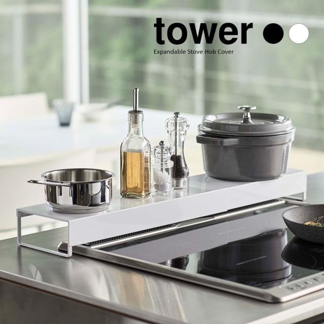 【山崎実業】奥行ワイド 棚付き 伸縮 排気口カバー タワー tower(ホワイト)(ブラック) // YAMAZAKI 山実 モノトーン 雑貨 人気