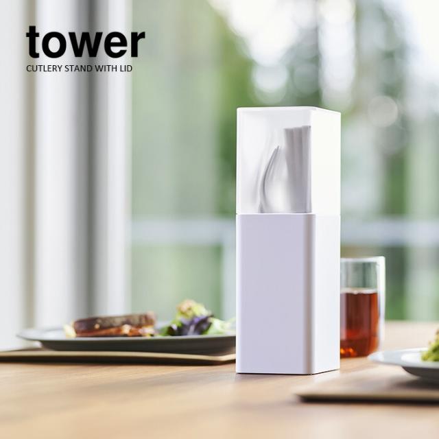 【山崎実業】蓋付きカトラリースタンド タワー (ホワイト)(ブラック) // YAMAZAKI 山実 モノトーン 雑貨 人気