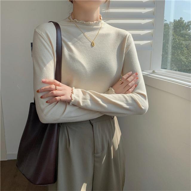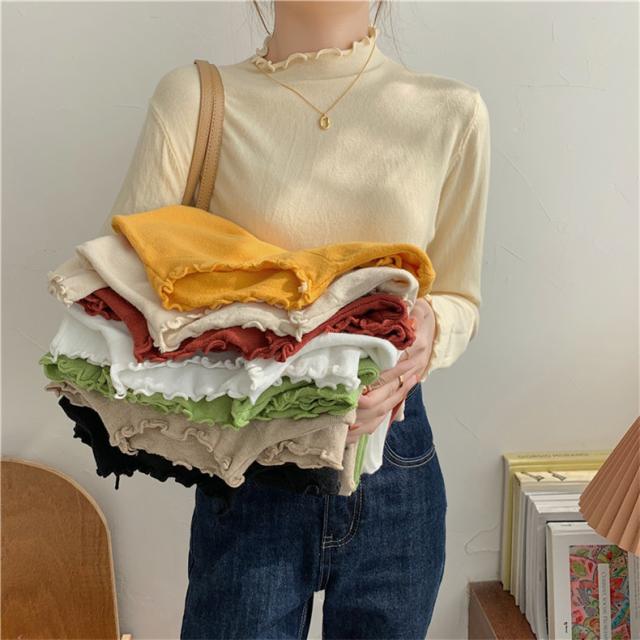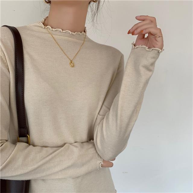 レディース 秋トップス インナー 長袖 綿混 大きいサイズ ロングスリーブ カットソー クルーネック 可愛く上品な大人の雰囲気 すっきりとした丈感