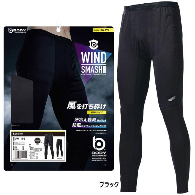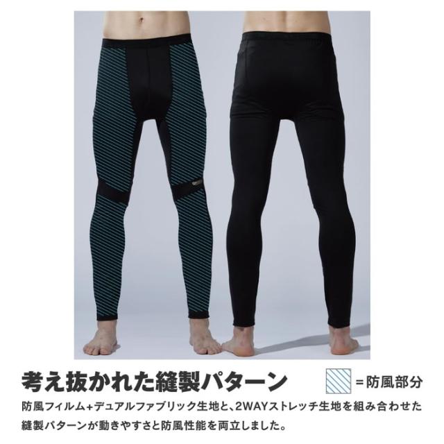 おたふく手袋 メンズ ボディータフネス 防風 ロングタイツ ウインドスマッシュ3 アンダーウェア スポーツインナー 防寒 ブラック 黒 送料無料 OTAFUKU JW-195