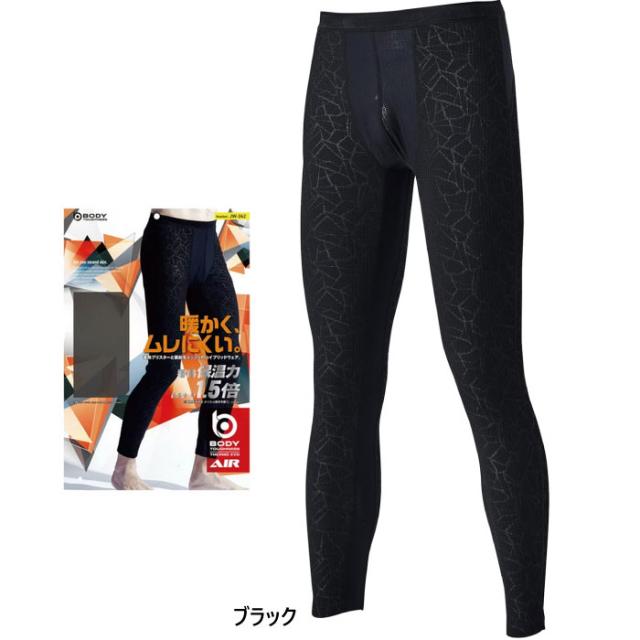蓄熱 裏起毛 おたふく手袋 メンズ ボディータフネス サーモエボエアー ミディアムウェイト ロングタイツ アンダーウェア インナー 保温 防寒 寒さ対策 ブラック 黒 送料無料 OTAFUKU JW-242
