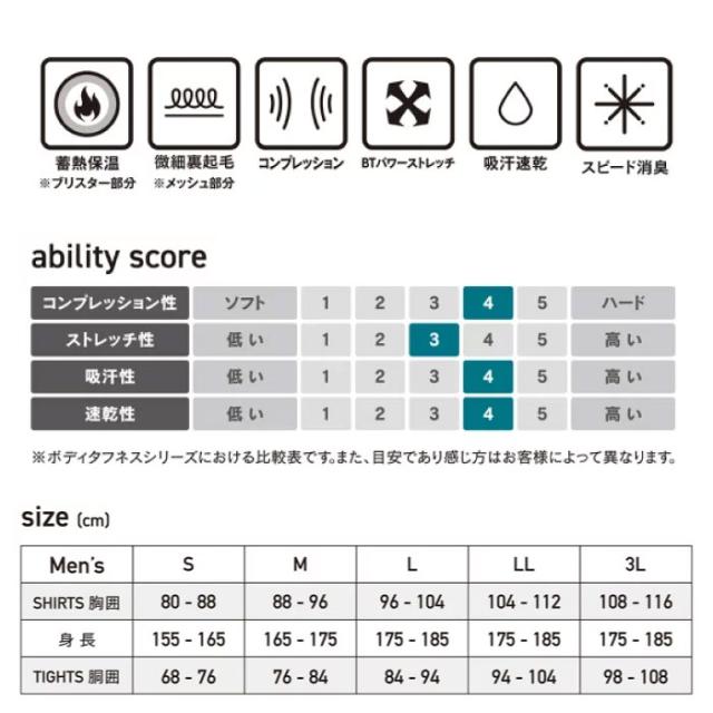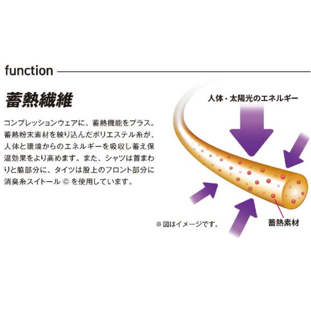コンプレッションインナーに蓄熱粉末素材を練りこみ、保温機能をプラス。
