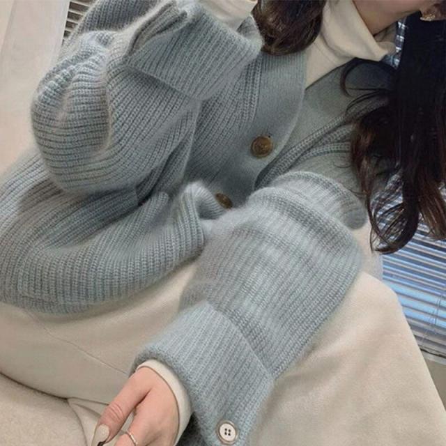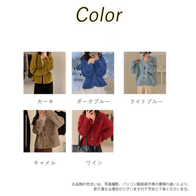 カーディガン レディース ニット セーター 前開き Vネック アウター 羽織り ニットカーディガン 無地 厚手 ゆったり 防寒 暖