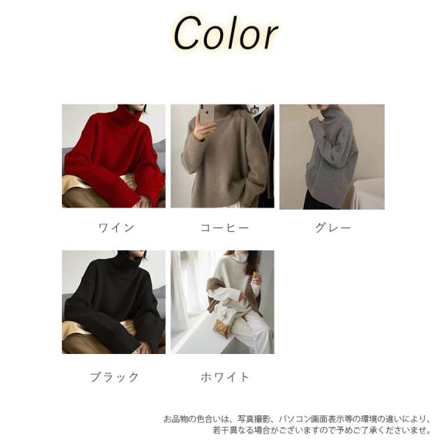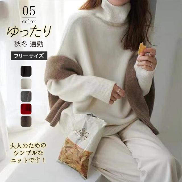 ニットセーター レディース タートルネック ニット 長袖 ビッグシルエット プルオーバー ゆったり レイヤード 無地 厚手 あった