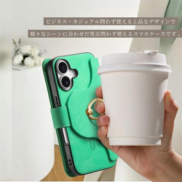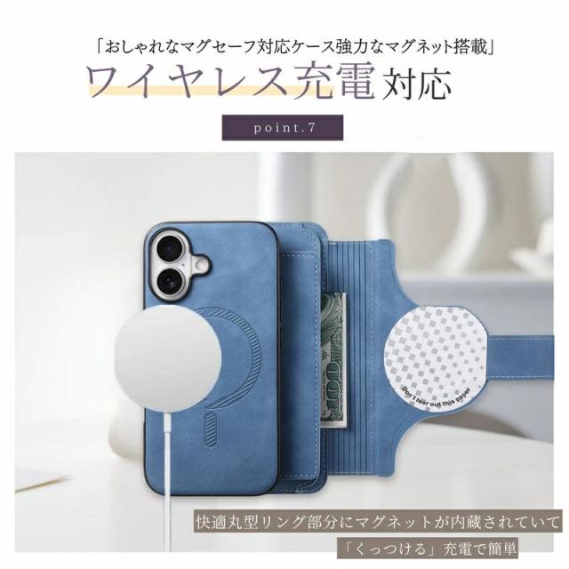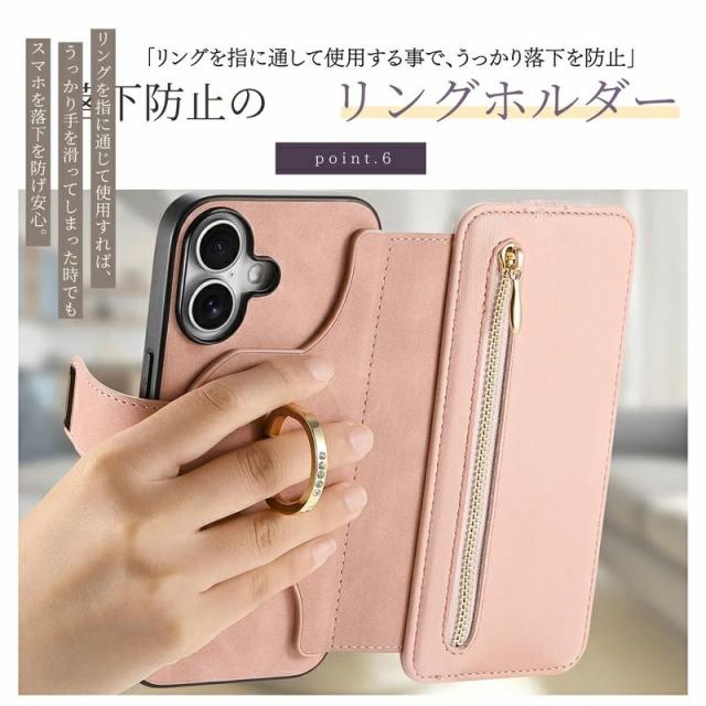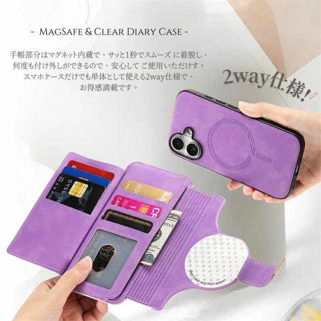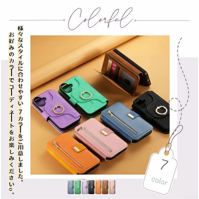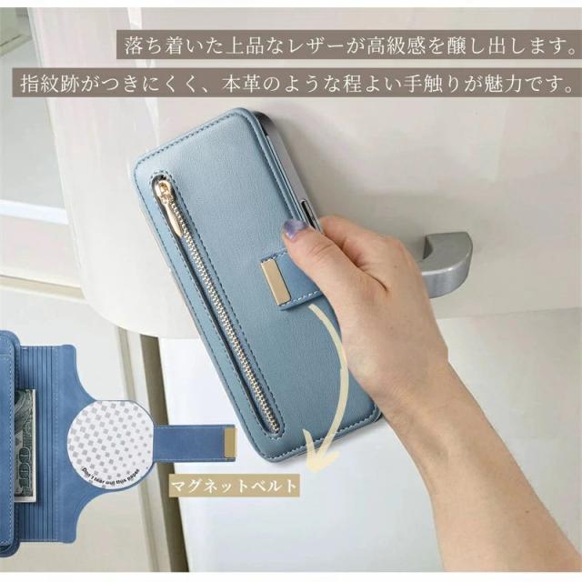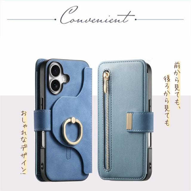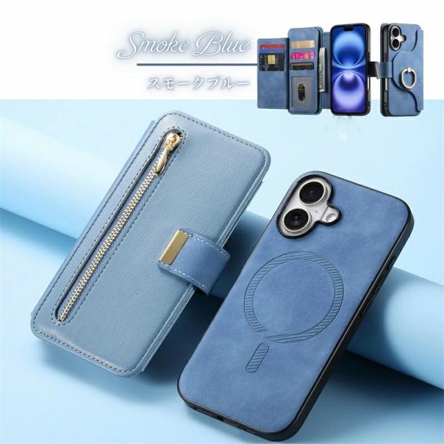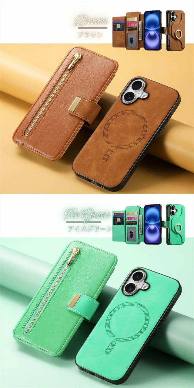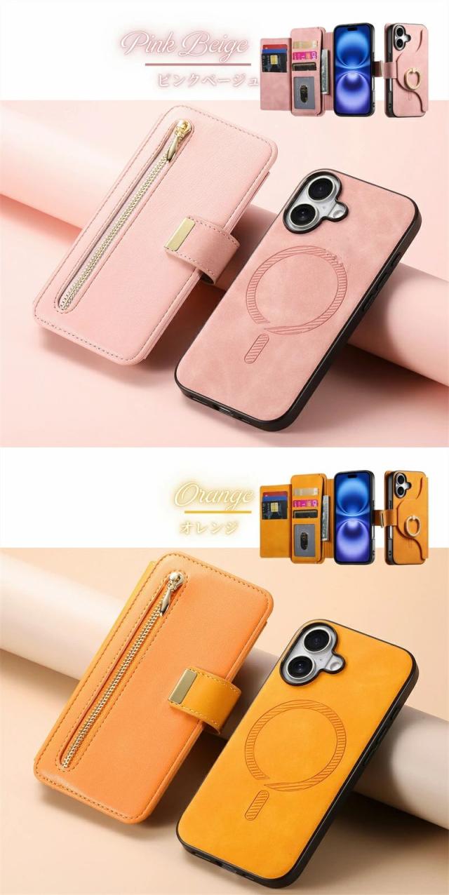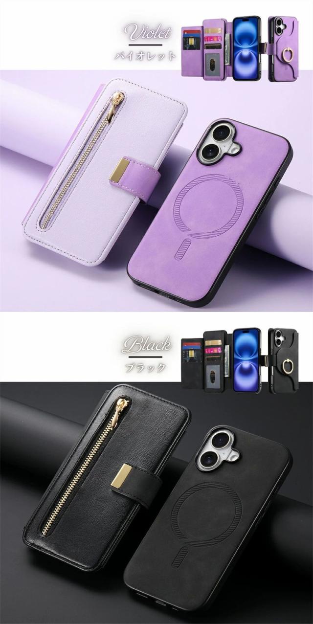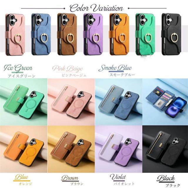 iPhoneケース&スマホリング付き /MagSafe対応分離式手帳型ケース/カードポケット/ファスナーポケット付き |