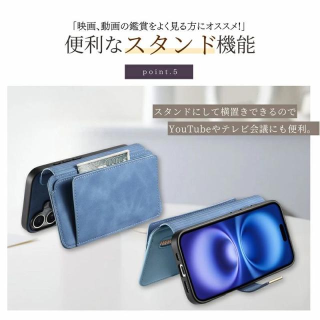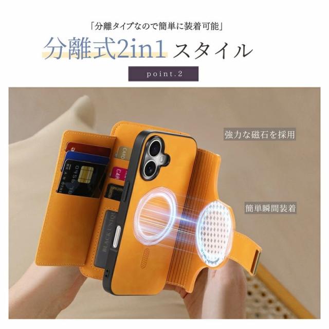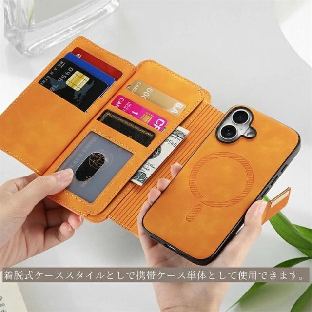■分離式2in1 分離式2in1は、着脱式ケーススタイルとしで携帯ケース単体として使用できますキカードや小銭を入れる外付けの革ケ一スを付はて財布としても使用できます。 ■MagSafeとワイヤレス充電に対応。 ■使い勝手のいいカードスロット カードが6枚入るようになりさらに使い易くなります。 ■ファスナーポケットも付いているので小銭なども一緒に管理できます。 ■RFIDブロッキングによりスキミングを防止 ■リング部分が360度回転するため ホルダー機能としても使えます。 ※イメージ画像はiPhone16 を使用しています。 ご注意 |