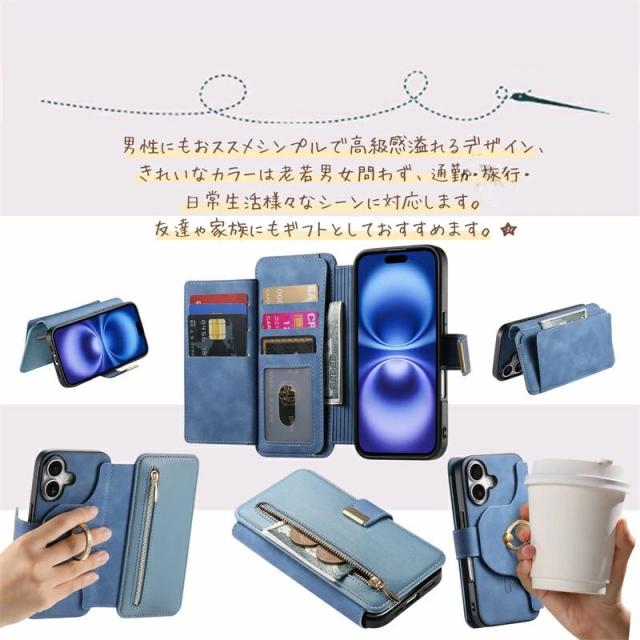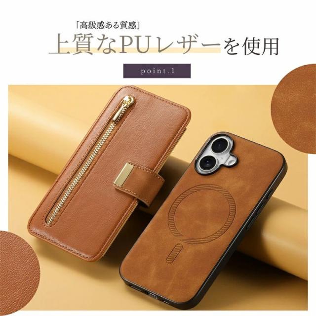 MagSafe対応 iphone 16 ケース 手帳型 iphone 15 ケース カメラ レンズ保護 マグセーフ おしゃれ カード収納 スキミング防止 15Plus 15Pro 15Pro Max 12Pro カバー ワイヤレス充電対応 ビジネス 女子 全面保護 耐衝撃 レザーケース 携帯カバー 分離式 ファスナーポケット