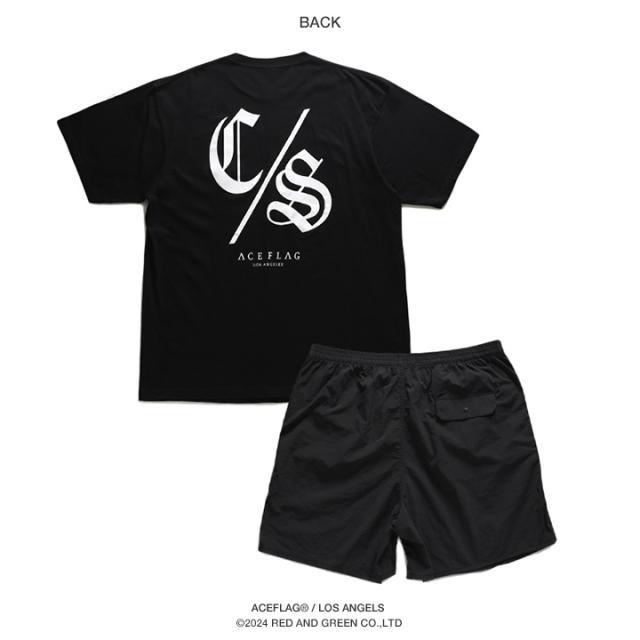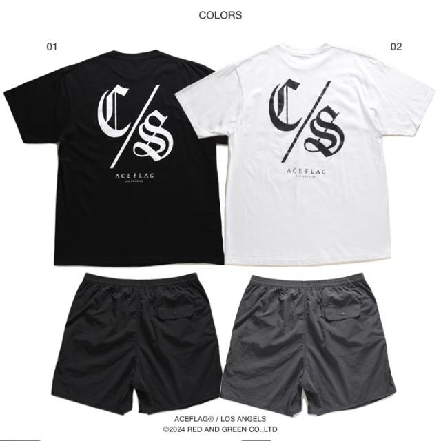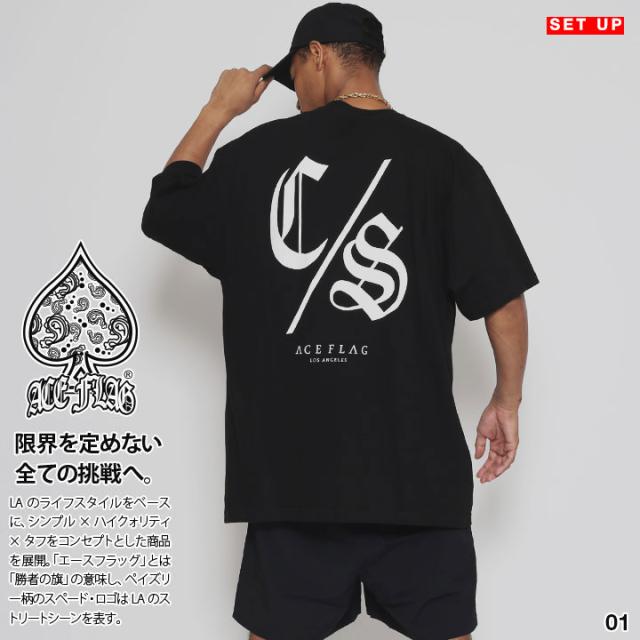 【41%OFF】ACE FLAG 上下セット 半袖 ブランド Tシャツ ハーフパンツ メンズ 春夏用 全2色 大きいサイズ エースフラッグ セットアップ ナイロン S CS コンサフォス Compton コンプトン ビッグシルエット b系 ヒップホップ フストリート系 ハイ AF-SE-TS196