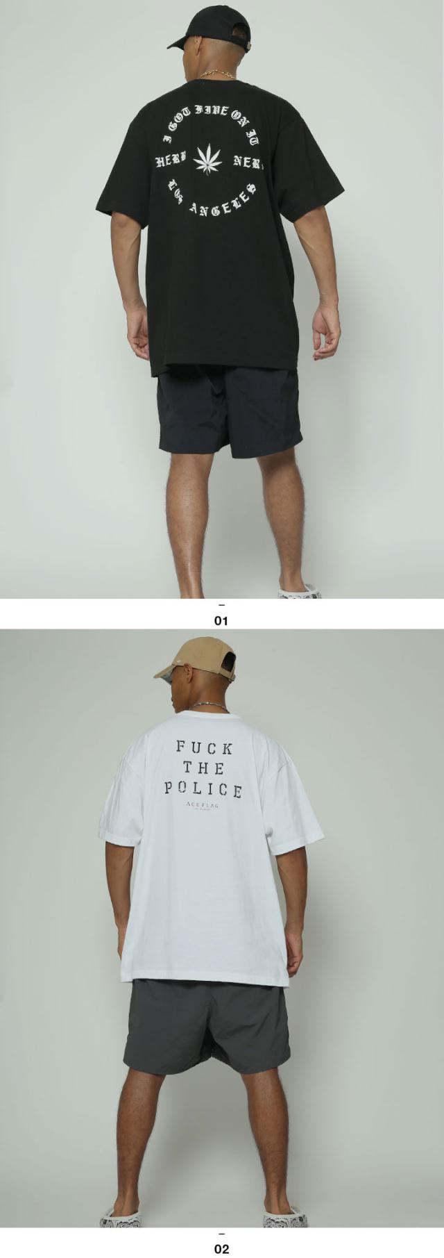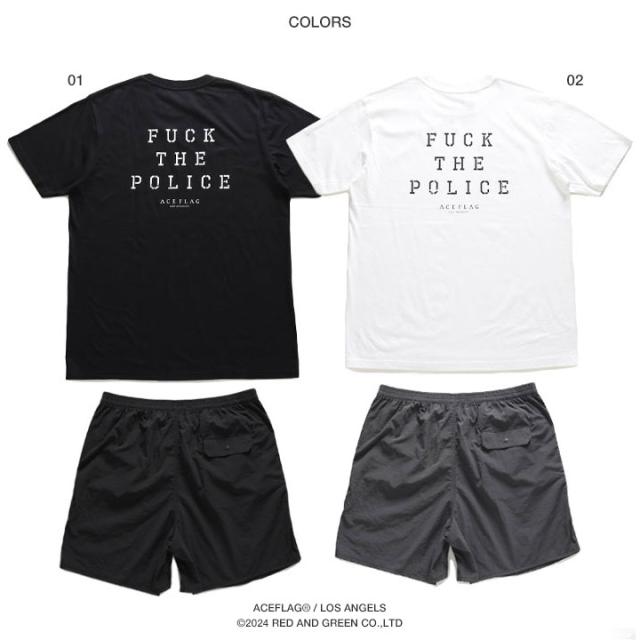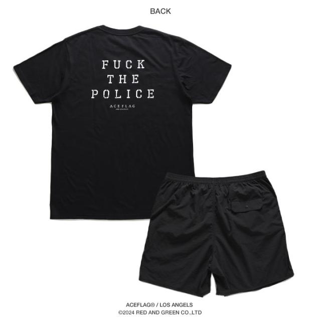 【43%OFF】ACE FLAG 上下セット 半袖 ブランド Tシャツ ハーフパンツ メンズ 全2色 大きいサイズ エースフラッグ セットアップ ナイロンパンツ Fuck the Police ファック・ザ・ポリス Compton ビッグシルエット ヒップホップ ストリート系 AF-SE-TS201