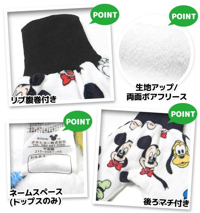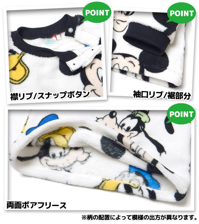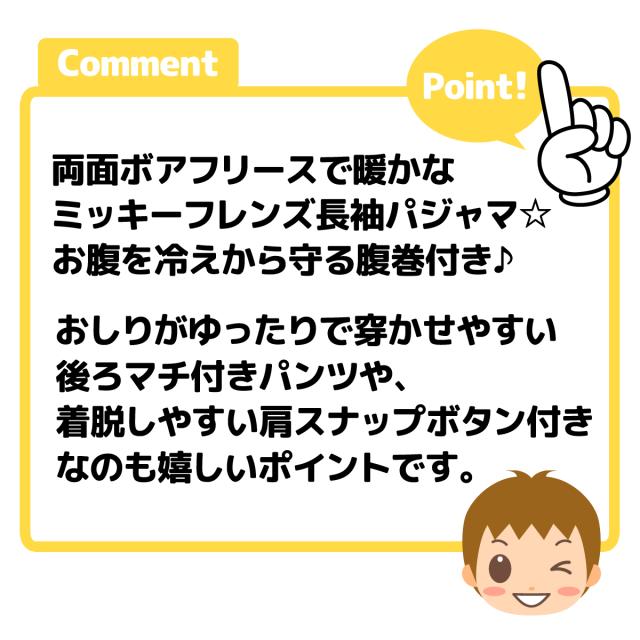 【送料無料】男児 ベビー 腹巻付 長袖 パジャマ ボアフリース Disney ディズニー ミッキーフレンズ あったか素材 上下組 肩スナップボタン 後ろマチ 男の子 80cm 90cm 95cm iw-1206a-ow【メール便対応】