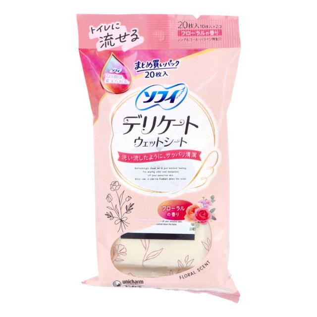 ユニ・チャーム ソフィ トイレに流せるデリケートウェットシート ノンアルコール フローラルの香り 10枚 2個入り X6パック