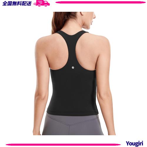 ◆商品名:[CRZ YOGA] タンクトップ カップ付 レディース ヨガウェア 速乾 レーサーバック スポーツブラトップ Butterluxe ブラック L