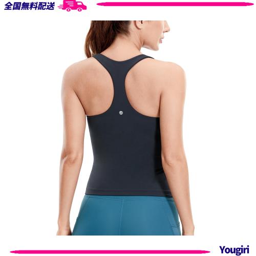◆商品名:[CRZ YOGA] タンクトップ カップ付 レディース ヨガウェア 速乾 レーサーバック スポーツブラトップ Butterluxe ダークネイビー M