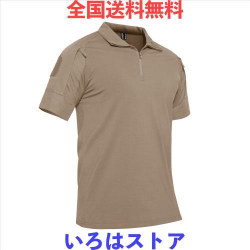 メンズ アウトドア タクティカル 半袖 迷彩 コンバット ミリタリー シャツ コットン 戦闘服 サバゲー ライトカーキ XL