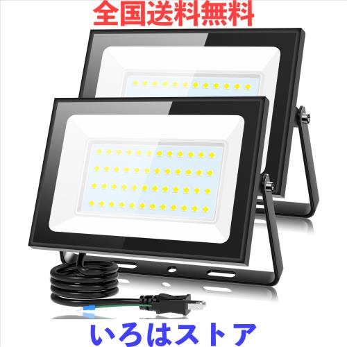 KIWEN【超薄型・2個セット】 LED投光器 80W 10000LM 昼光色 ledライト 屋外 IP66 防水 豪雨対応 作業灯 led 100V対応 アース付きプラグ P
