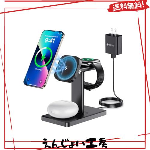 【最新型】HOUOA Magsafe充電器 3in1ワイヤレス充電器 マグネット式 マグセーフ充電器 Qi急速充電 同時に3つのデバイス充電 15W/10W/7.5W
