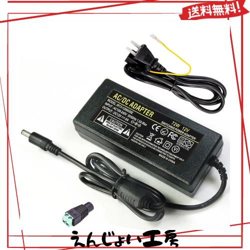? <対応機種>幅広い互換性の12V ACアダプター、LED テープライト・ビデオ・防犯カメラ・監視カメラ・オーディオ用など12V(0〜6A)規格の製品には電源としてご利用させていただけます。コンパクトかつ 6000mA の大容量! 最大出力を超えない場合は複数のデバイスへの電源供給にも最適! 安定した電源供給が可能な12V アダプターです。バッテリー充電としてまたは高い信頼性を必要とする用途(精密機器、医療機器など)には不向きです。※モーターのように電源投入時(スタート時)に定格電流を大きく上回る電流(ピーク電流)が あるものは動かない場合がありご注意ください。