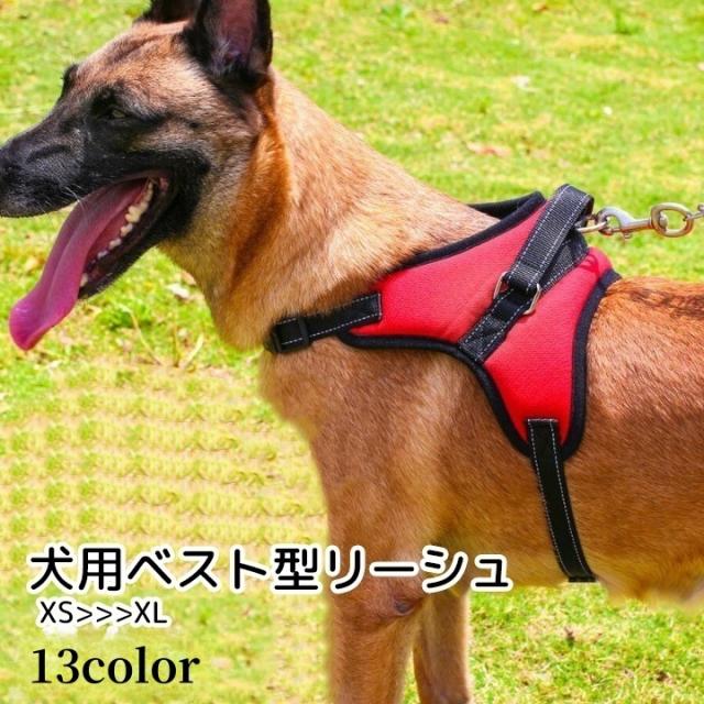 犬用ハーネス ペットリーシュ ベスト型 ドッグウェア ペット用品 ブラック ホワイト レッド ブルー 迷彩柄 抜け出し防止 かっ