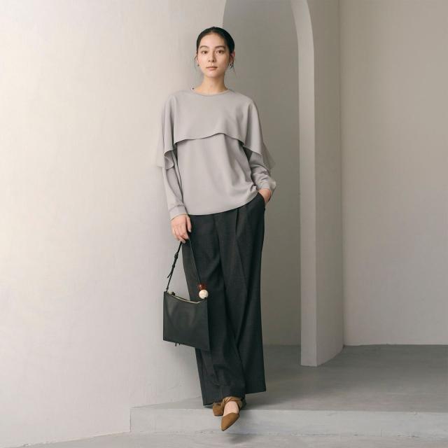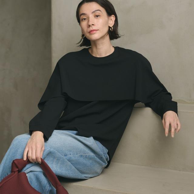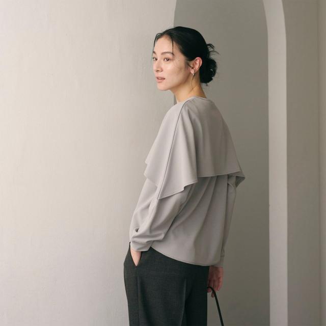 ケープのようなレイヤードデザインが華やかな雰囲気を演出する主役級カットソー。
