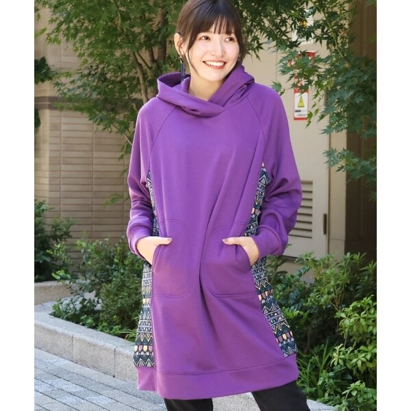 シンプルなパーカーワンピースに、ジャカード生地を加えた個性が光る1枚。