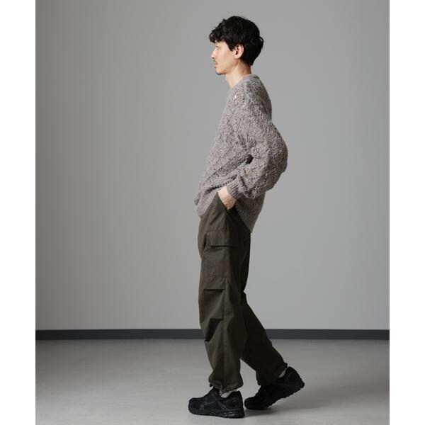 複数の色の糸を組み合わせた印象的なクルーネックニット。手編みのような大きな網目にすることで、インナーのカラーなどでレイヤードを楽しめる1着に仕上げました。