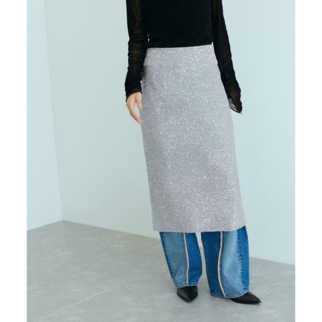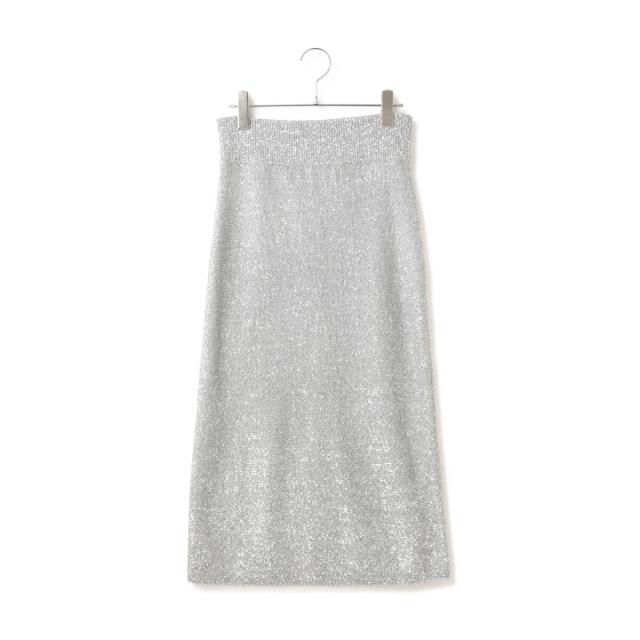 素材感が際立つシンプルなIラインシルエットのスパンコールニットスカート。