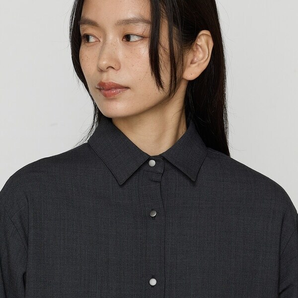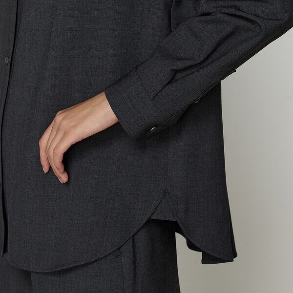 ウール混のポリエステルという風合いを感じながらも、取り扱いのしやすさ、2WAYストレッチの着心地の良さが特長です。