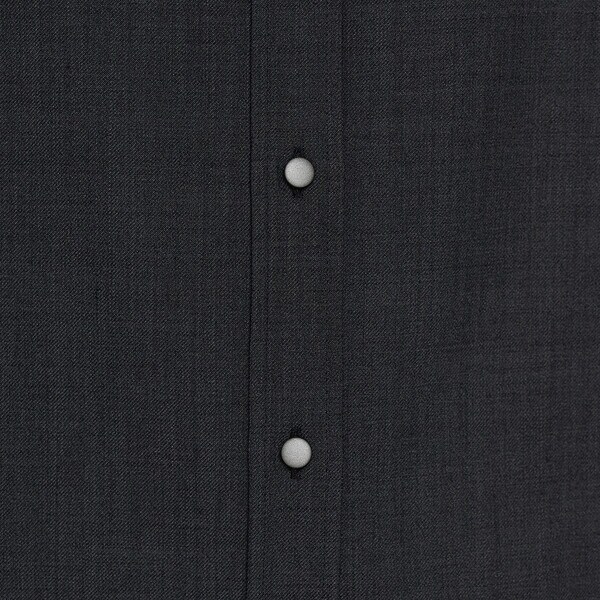 釦は落ち着いた色味のメタルボタンにし、光りすぎず全体を引き締めるきりっとしたポイントにしています。
