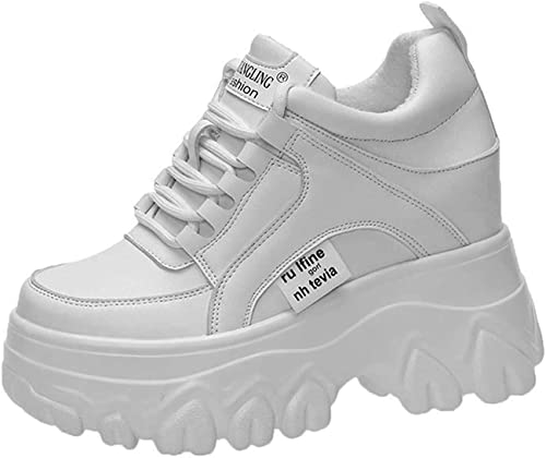 Fosys 厚底スニーカー スニーカー レディース ダッドスニーカー 厚底 インヒール レースアップ 黒 白 歩きやすい 美脚 (ホワイト, meas