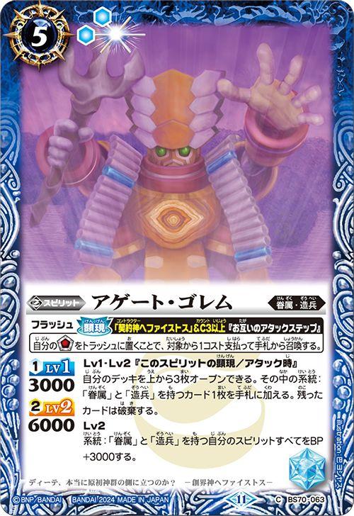 バトルスピリッツ アゲート・ゴレム(コモン) 全天の覇神(BS70) 063 | 眷属・造兵 スピリット 青